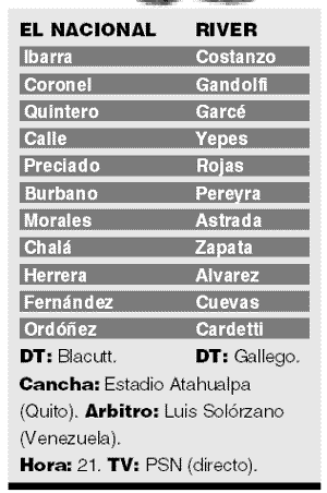 soportar la altura de Calama (2600 metros), y River la de Quito (2850