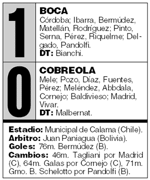 cabeza. Boca tiene ahora seis puntos y lo siguen el Cobreloa (3), y Deportivo
