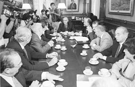 Luego de la reunión actuaron como voceros Colombo y Storani, a
