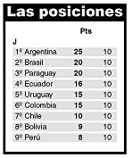 la tabla, mientras que Chile va séptimo con 10 unidades, aún