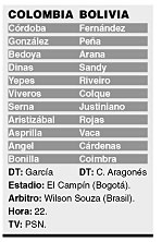 en Bogotá, Colombia será anfitrión ante Bolivia.