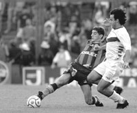 izquierda y, ya jugado, el arquero le tiró toda su humanidad encima
