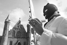 se reunían afuera de la Cámara alta del Parlamento holandés,