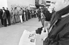 fila, a las tres de la mañana, frente al ex Mercado del Plata.