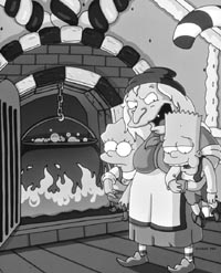 Lisa y Bart (al estilo de Hansel y Gretel) son tentados por