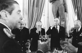 entraron en tropel al salón San Martín. En las mesas rodeados