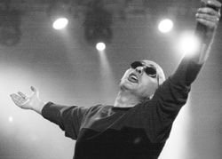 el líder de los Redondos parece contemplar el desastre en un gélido