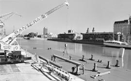 atravesar el dique 3, de Puerto Madero, pero ya con sus fragmentos unidos