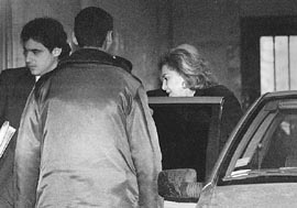 se retiró del edificio, escoltada por un par de policías