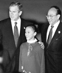 Las reuniones bilaterales de Bush con el presidente de China Jiang Zemin,