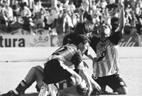 Por P.V. 1 Como equipo, Racing es un perfecto estado de ánimo. Nada que ver con el miedo escénico que acuñó Jorge Valdano ayer en la cancha junto a César Menotti porque a ese temor lo acostumbró su hinchada. Es un temperamento que pesca el humor del aire y lo transforma en un motorcito que empuja con intermitencias, pero sin pausa. Pero es un estado de ánimo que no nace del alma sino del estómago. 2 Ayer sucedió en un par de ocasiones en la cancha de Vélez: cuando, en el momento en que Chicago, como un grotesco luchador de sumo, estaba a punto de echarlo fuera de los límites de la cancha, interpretó el 1-0 a favor como un espaldarazo de la fortuna; y cuando Chatruc puso el 3-2 tras las tres rápidas modificaciones introducidas por Merlo, el momento en que los once que estaban en el campo entendieron que en este Apertura nada les es imposible. Ese humor que a veces silba y a veces sopla como ventarrón es el más grande sponsor que tiene el equipo de Avellaneda. 3 Dos observaciones al pie para mostrar el dobladillo de esa fortuna. Uno: Sequeira dio corner pese a que era orsay de Estévez; Velázquez salió mal y su compañero Herbella la empujó adentro. Dos: Jesús encabeza un contraataque con melindre poco religioso, Viveros se la roba, Chatruc le pone una pelota milimétrica a Maceratesi y llega el empate 3-3. Demasiados bocados sueltos para un equipo hambriento como Racing. 4 En la cancha se juntaron el hambre y las ganas de comer. Racing fue (es) el hambre: una necesidad inabarcable que ya lleva 35 años de ayuno y que ante la promesa del banquete no descansa ni en el entretiempo. Chicago, en cambio, encarnó ayer la calculada curiosidad que despiertan las ganas de comer. Se sentó a la mesa con destacable ambición, pero se sació demasiado pronto. Cuando se puso 3-1 arriba, pareció que estaba más cerca del quinto que del cuarto. Pero prefirió secarse la boquita muy delicadamente con la servilleta y dedicarse a avisarle al chef que estaba lleno y tirando, siempre que podían sus zagueros y sus volantes, la pelota para arriba, lo más lejos posible. 5 Ésa es la diferencia que le augura campanas a Racing. Ningún otro equipo posee más bien, sufre el hambre que acosa al conjunto que dirige Reinaldo Merlo. El único que lo tuvo, parece, ha sido Boca, que hace diez días se lo devoró con la avidez concienzuda de quien limpia hasta los huesitos del pollo. Porque, aunque parezcan lo mismo, a la larga el hambre le gana a las ganas de comer. 6 Si Racing es el hambre, River es el régimen. Sometido a varias clases de normativas entre ellas, la que, a juicio de la dictadura del codificado, lo obliga a jugar cada fecha con el resultado del puntero ya puesto, la filosofía que promueve su abstinencia es más estética que anímica. Hambre no tiene, está claro: no le ganó a San Lorenzo, perdió en Santa Fe, lejos de descontar puntos los va perdiendo por el camino como un Hansel cualquiera. A su dieta de puntos la llevan histéricamente al día las confusas contramarchas del cuerpo técnico y la marea en la que naufragan los jugadores. 7 A las seis de la tarde, las instrucciones de la dieta riverplatense parecían claras: aprovechar el empate de Racing, ganarle a Colón y descontar la ventaja a cinco puntos; ganarle más adelante el partido a Chacarita, el de la 15ª fecha que Racing ya jugó y perdió con Boca, y quedar a dos puntos; ganarle, por fin, el encuentro de la 16ª fecha al mismísimo Racing y pasar, definitivamente, a la punta. En los papeles se veía bárbaro. A las 21.30, Ramón Díaz hizo un bollito con las instrucciones. Las ganas de comer, en todo caso, quería satisfacerlas deglutiéndose a Horacio Elizondo. 8 Racing puede jugar mal, como contra Boca, muy bien como contra Gimnasia, o más o menos, como ayer contra Chicago. Pero la fe que deposita en ese hambre visceral no lo traiciona, aunque en la cancha pueda trastabillar. Merlo ha comprobado que su equipo se adapta elásticamente -como un babero a las necesidades tácticas del partido que esté disputando: los cuatro del fondo del primer tiempo de ayer mutaron, con la salida de Arano, en un libre y dos zagueros, y al equipo le terminó yendo mejor. 9 Ése es otro ejemplo: el hambre no se sacia con los triunfos o las remontadas sino que cunde, contagia. Arano, un jugador que arrancó el torneo sin nivel para ser titular, se vio imbuido de este espíritu sanamente hambreado y cumplió ayer un desempeño aceptable. Lo mismo que Viveros, lo mismo que Maciel, lo mismo que Estévez. En ese nivel se muestran varios jugadores. Si a veces no tiene relleno, es indudable que éste es un Equipo con Mostaza: cuando lo probás, pica. 10 ¿Qué puede pasar en lo que falta del Apertura? Las cartas los menúes están sobre la mesa. Racing no encuentra un equipo caníbal que lo frene; River se conforma con unos saladitos informales. Ya hay ocho puntos de ventaja y a River le quedan 18 puntos por jugar. ¿Quién se anima a apostar que los gana todos, si de los últimos nueve ganó solamente cuatro?