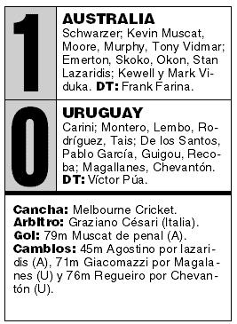 australiano de fútbol venció ayer 1-0 a Uruguay, en el encuentro