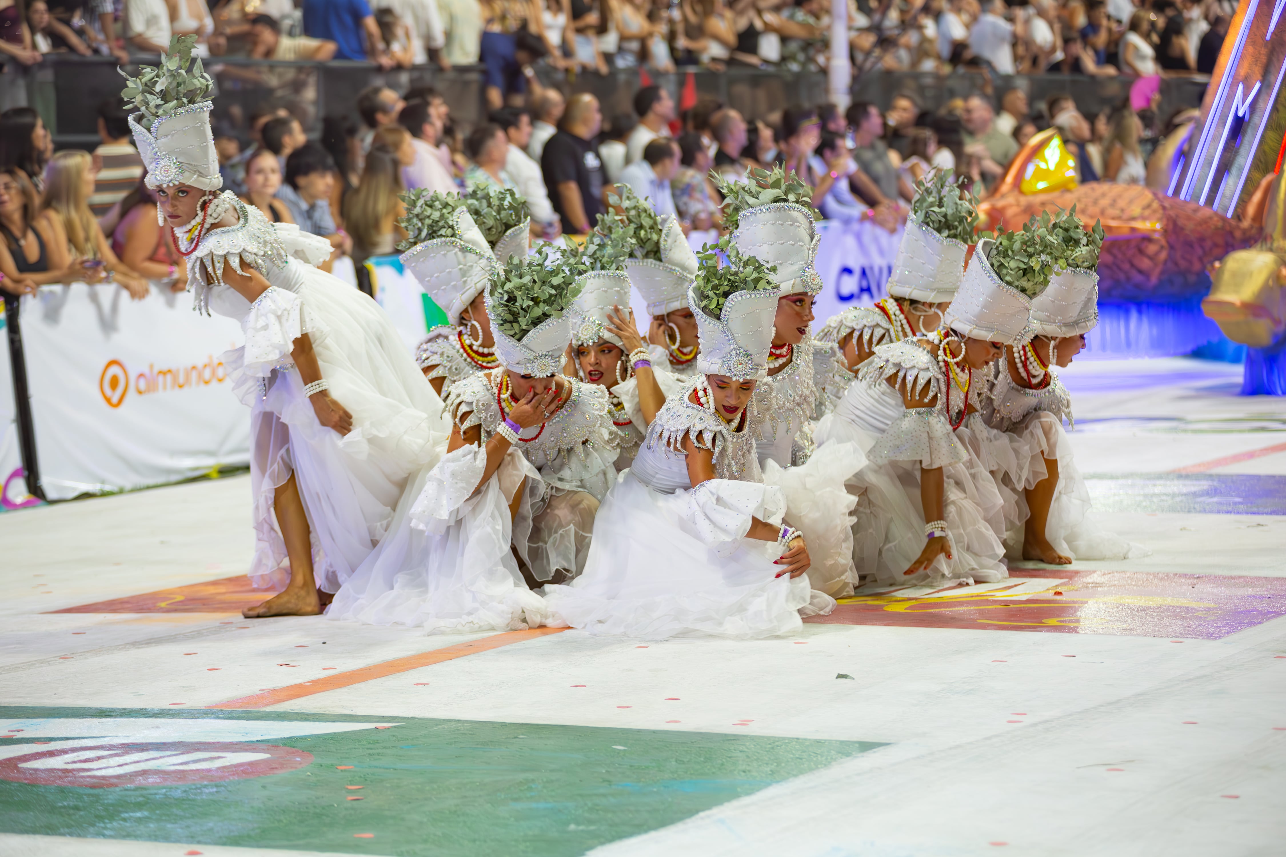 En el desfile, entre brillos y plumas, la comparsa contó con alegres sonidos de tamboriles la historia del pueblo sin derechos.