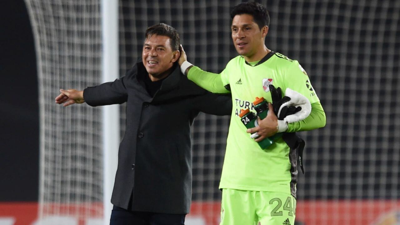 Enzo Pérez junto a Marcelo Gallardo (Archivo -)