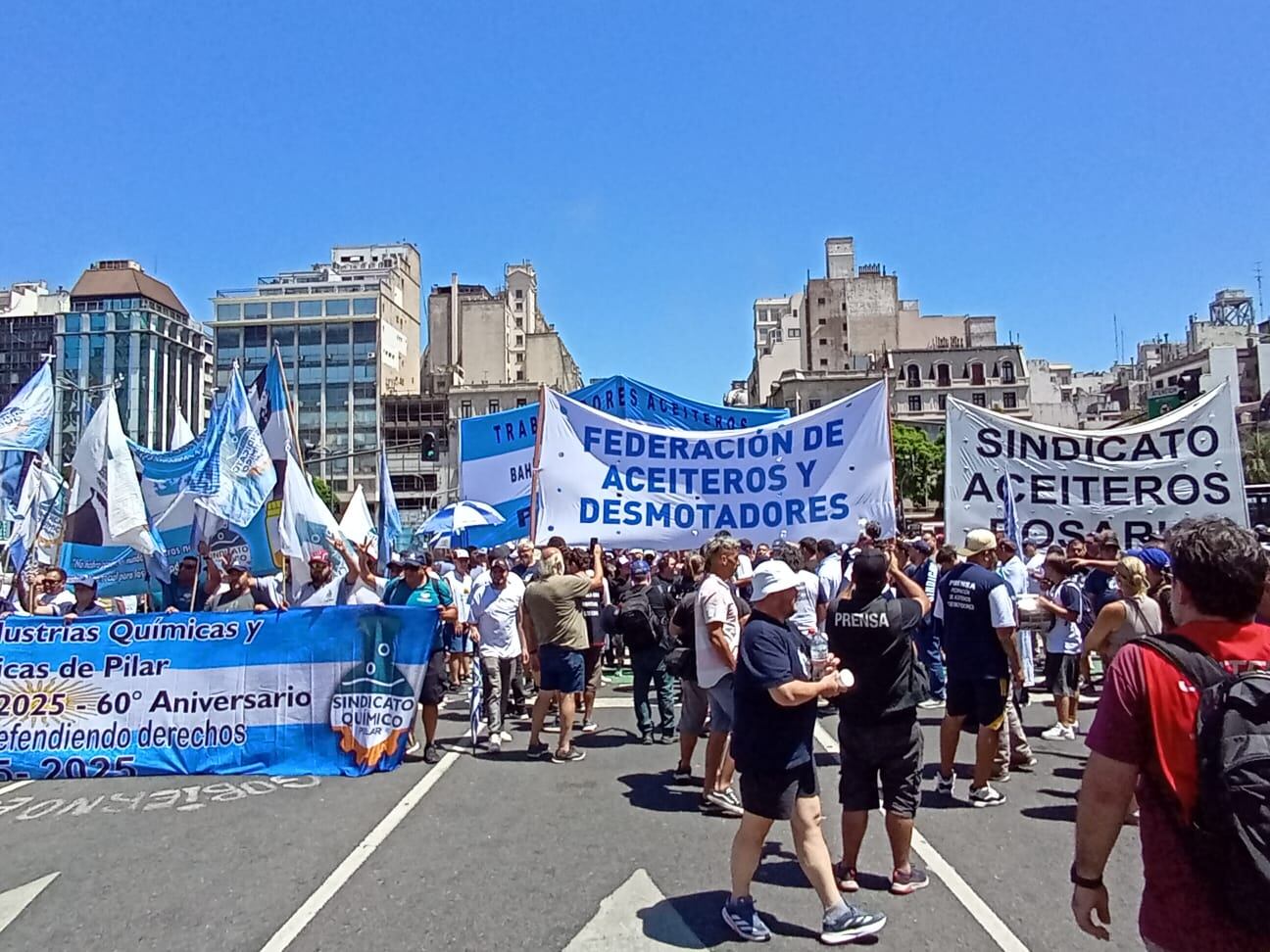 Los aceiteros en la marcha contra la reforma laboral. La seccional Bahía Blanca viajó hasta el Congreso. (Sindicato de los Aceiteros)