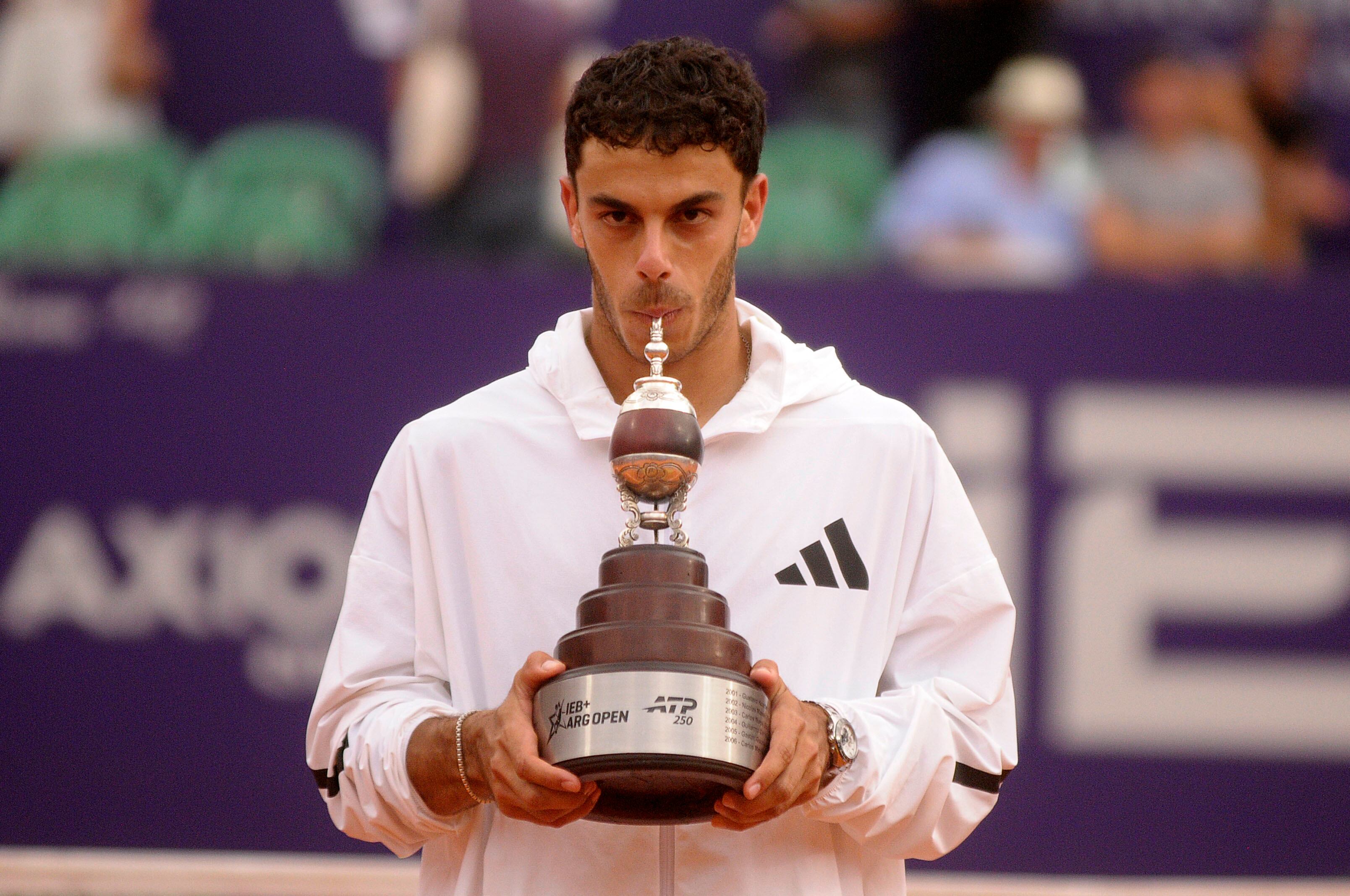 Francisco Cerúndolo con el mate que recibe el campeón del torneo. (ALEJANDRO LEIVA)