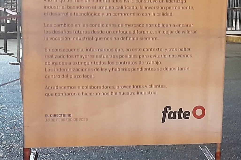 El cierre de FATE: “Nos encontramos hoy con un cartel cerrando la planta”