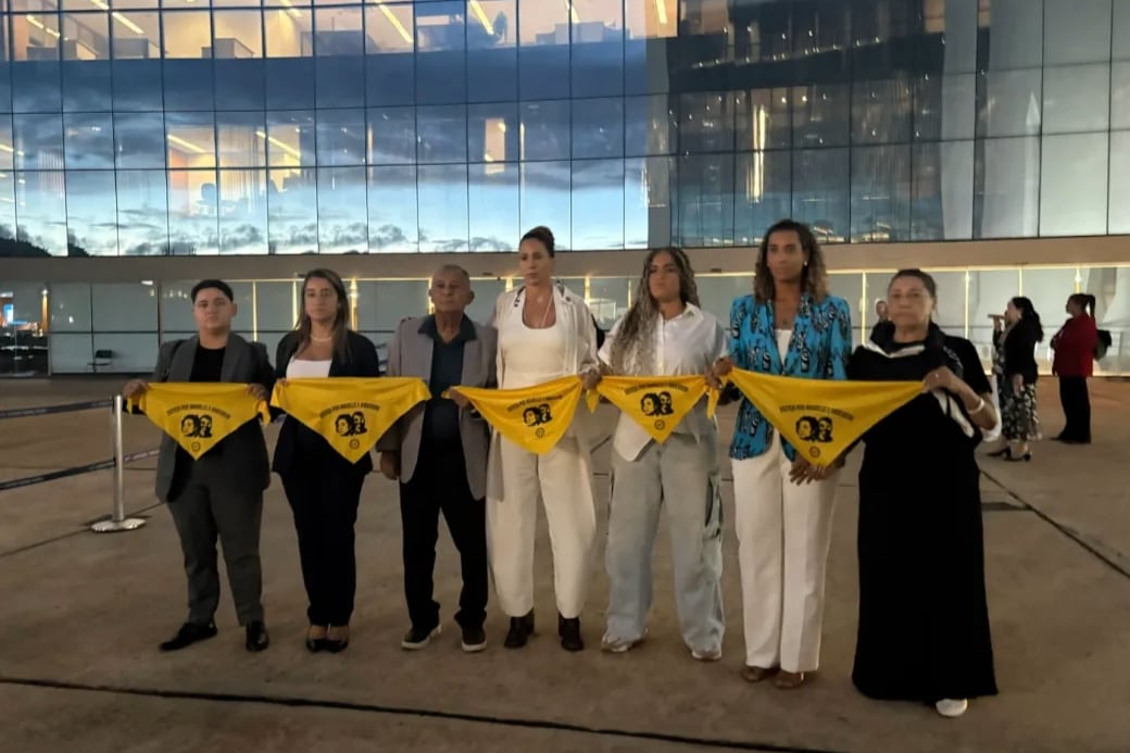 Familiares de Marielle Franco y Anderson Gomes después del primer día del juicio de los acusados ​​de ordenar el asesinato de la concejala y su chofer, en el Supremo Tribunal Federal (STF), en Brasilia, el 24 de febrero de 2026. (Camila Guedes)