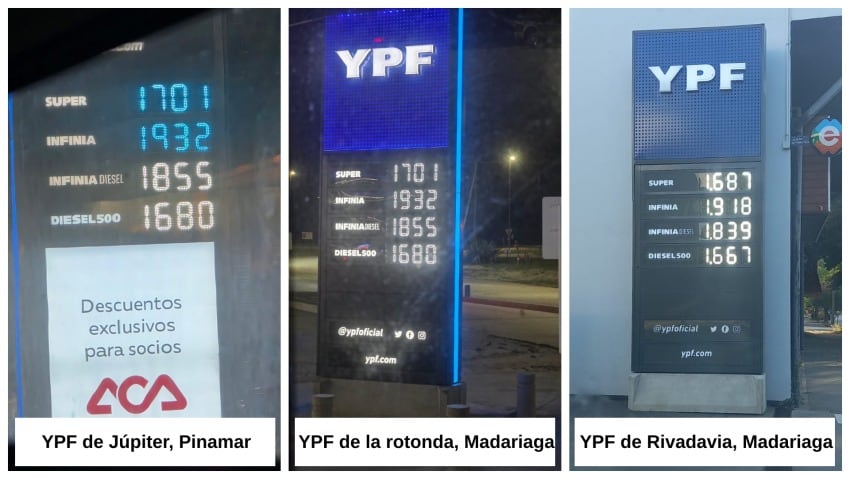 Comparativa de precios nafta Pinamar - General Madariaga 2026 (Gentileza -)