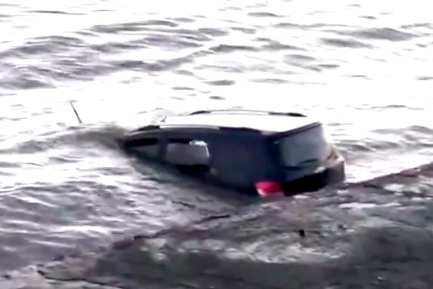 Costanera: una camioneta cayó al Río de la Plata y los pescadores rescataron a una mujer y su hija