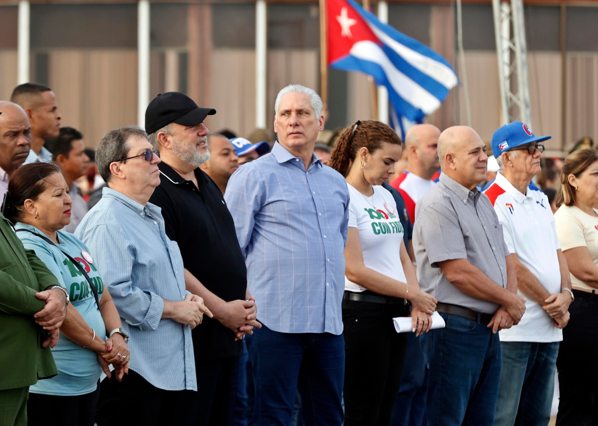 El presidente de Cuba, Miguel Díaz-Canel, durante la caravana llamada 'Parada Juvenil Antiimperialista sobre Ruedas'. (Ernesto Mastrascusa/EFE)