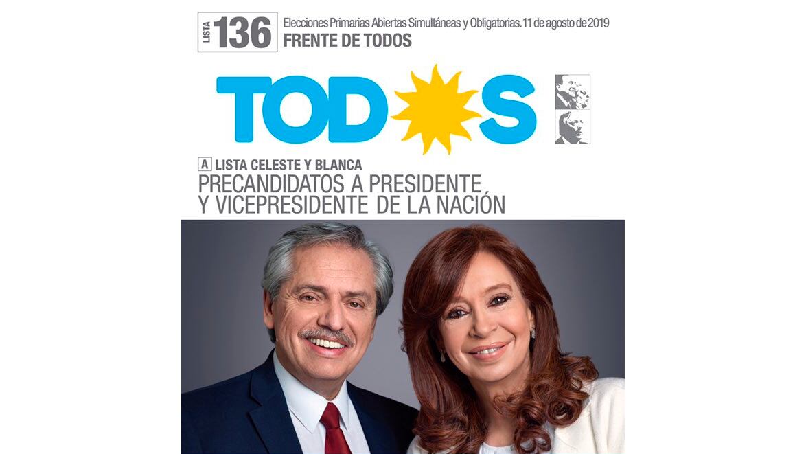 A diez días del esperado y tenso cierre de listas, el Frente de Todos presentó la boleta de la fórmula Fernández-Fernández para las Primarias Abiertas Simultáneas y Obligatorias del próximo 11 de a