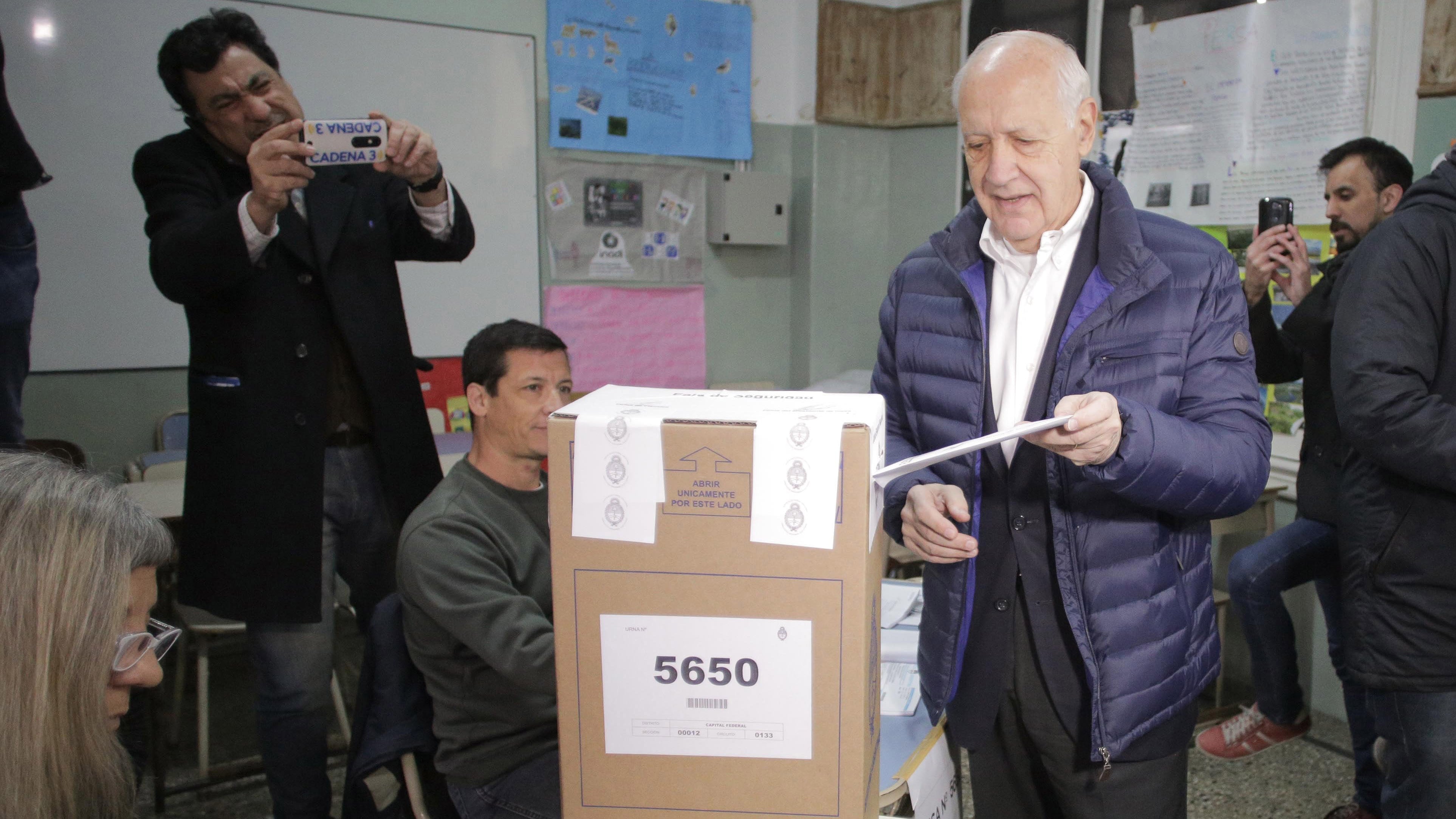 Roberto Lavagna, candidato a presidente de Consenso Federal, votó a las 9.45 en el Instituto San Francisco de Asís, en Núñez.