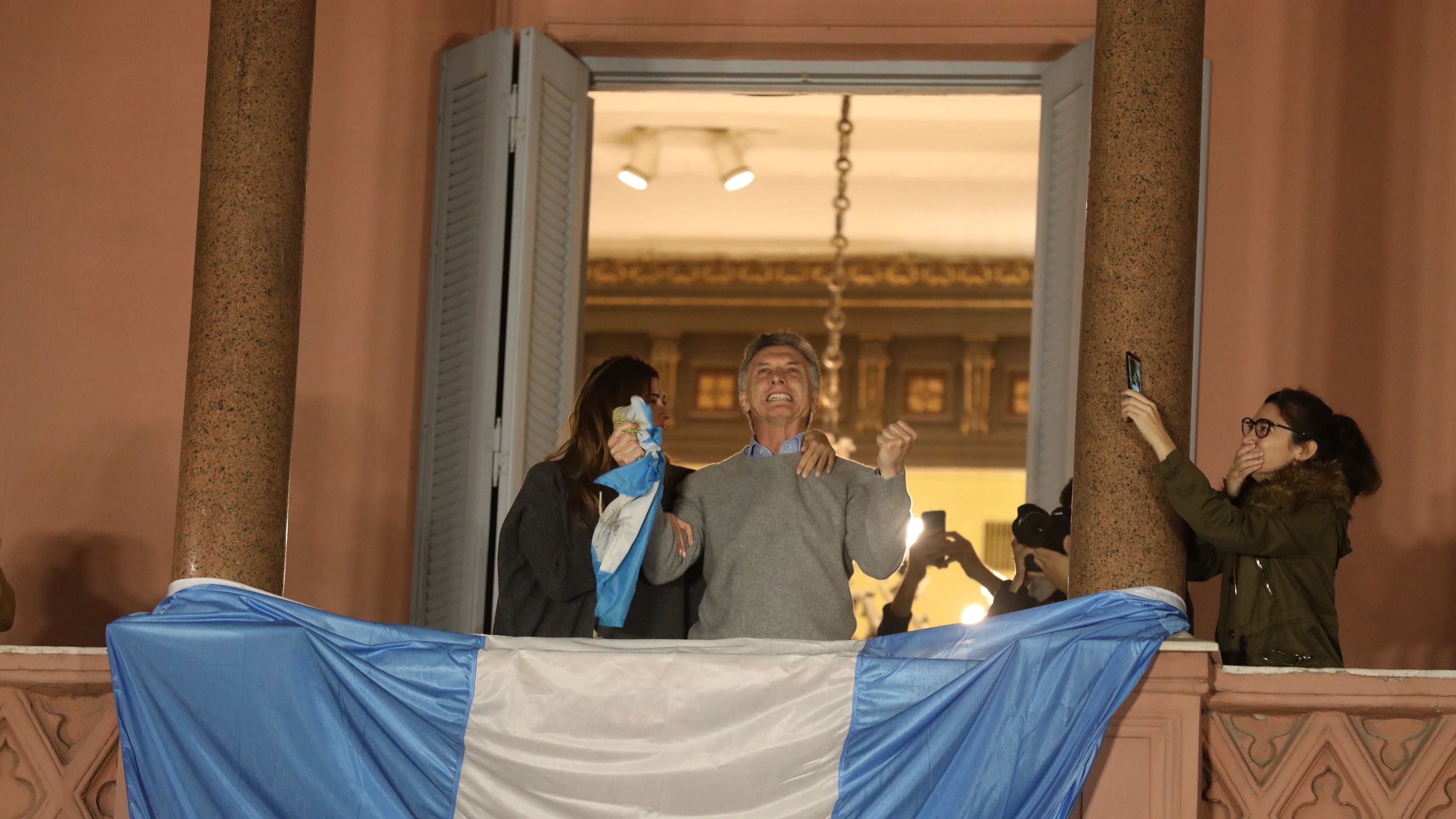 Macri salió a saludar a sus seguidores desde el balcón de la Casa Rosada
