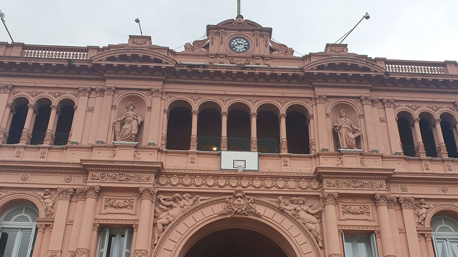 Pusieron un aro de básquet en Casa Rosada: críticas y burlas en las redes
