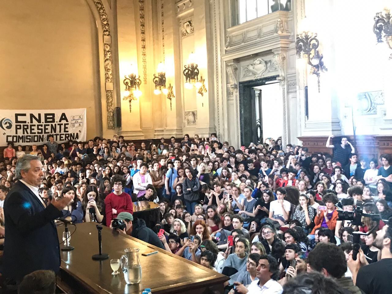 El candidato del Frente de Todos, Alberto Fernández, compartió esta tarde con el ex presidente uruguayo Pepe Mujica una charla en el Colegio Nacional Buenos Aires.