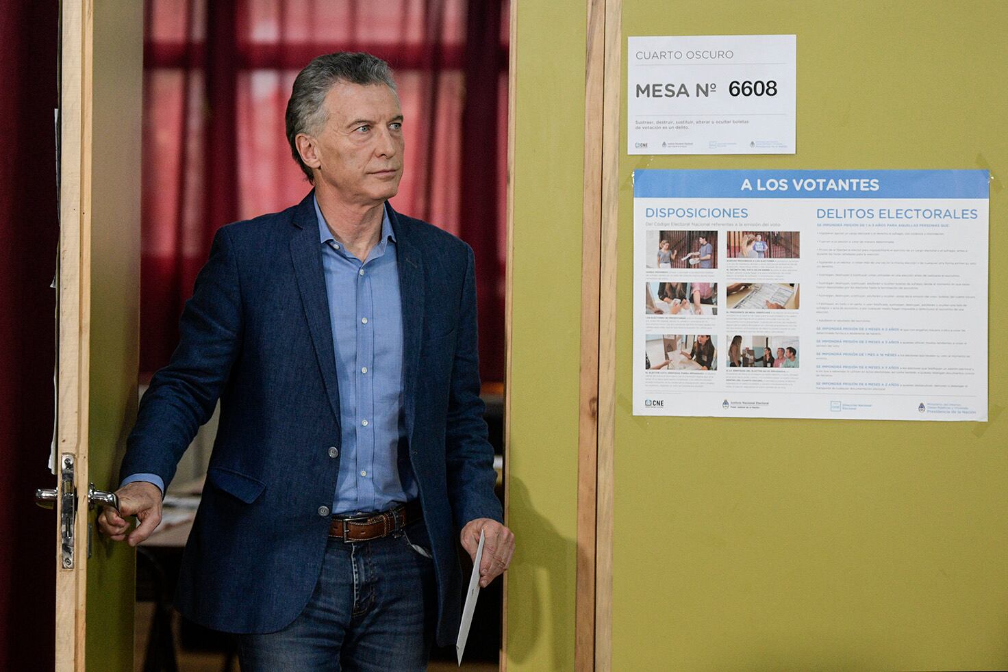 En menos de medio minuto, el presidente Mauricio Macri emitió su voto al mediodía en la Escuela número 16 "Wenceslao Posse", en Palermo.