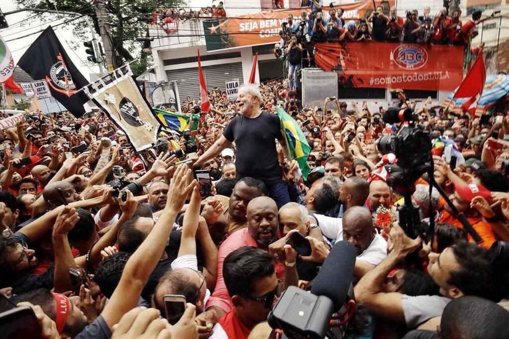 Lula habló ante una multitud que lo esperaba en San Pablo