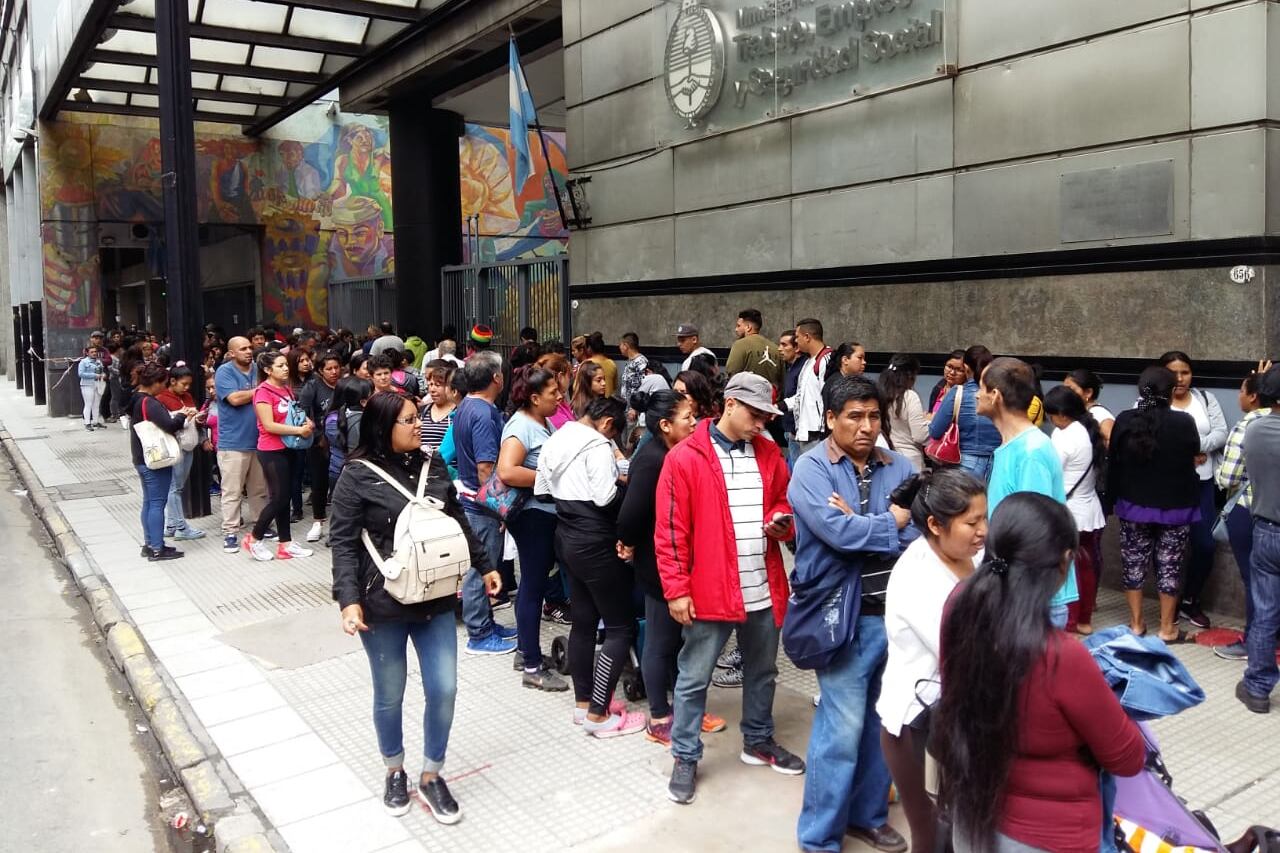 Largas filas por el bono de 5000 pesos que nadie sabe si existe