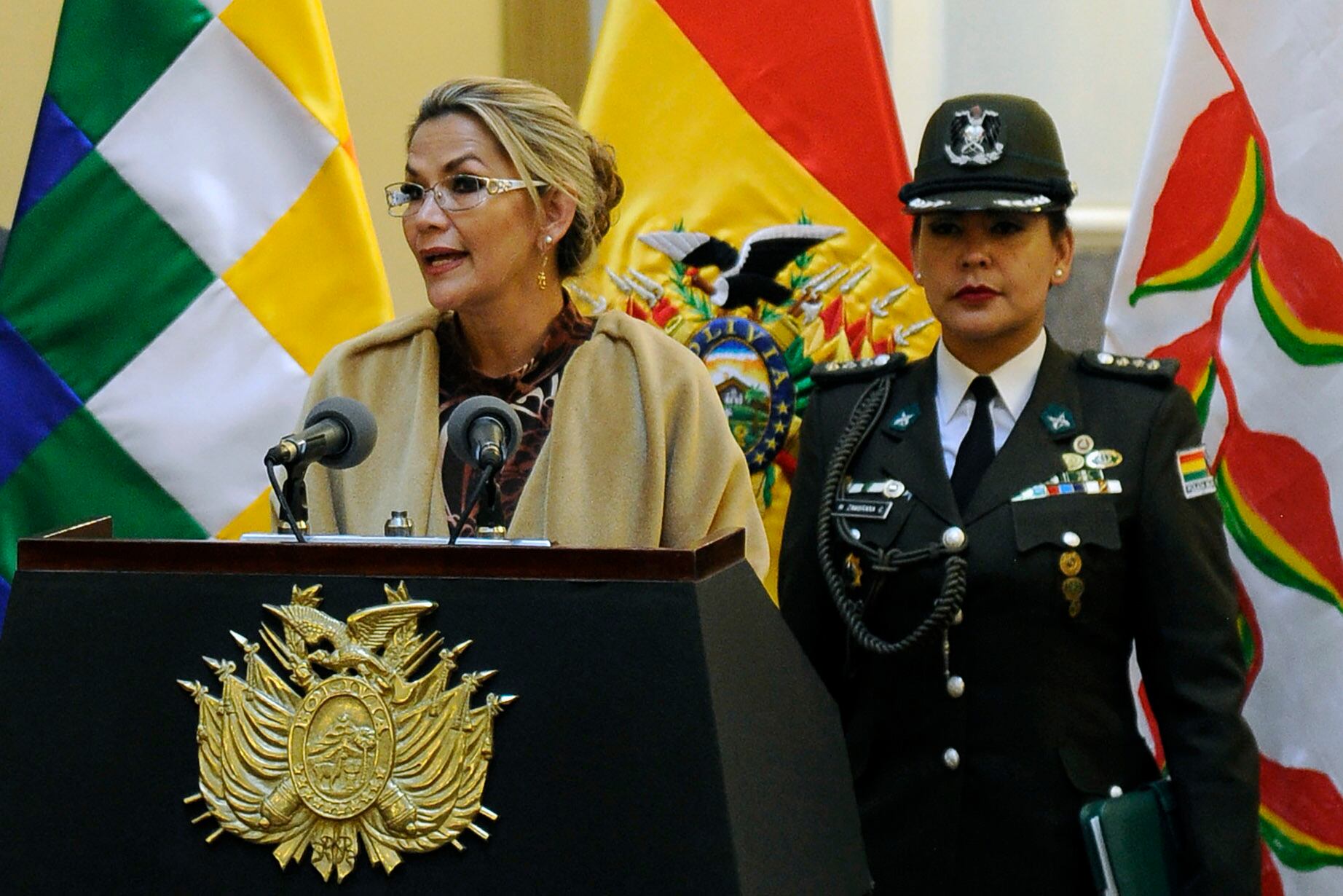 La presidenta autoproclamada de Bolivia le agradeció a las Fuerzas Armadas
