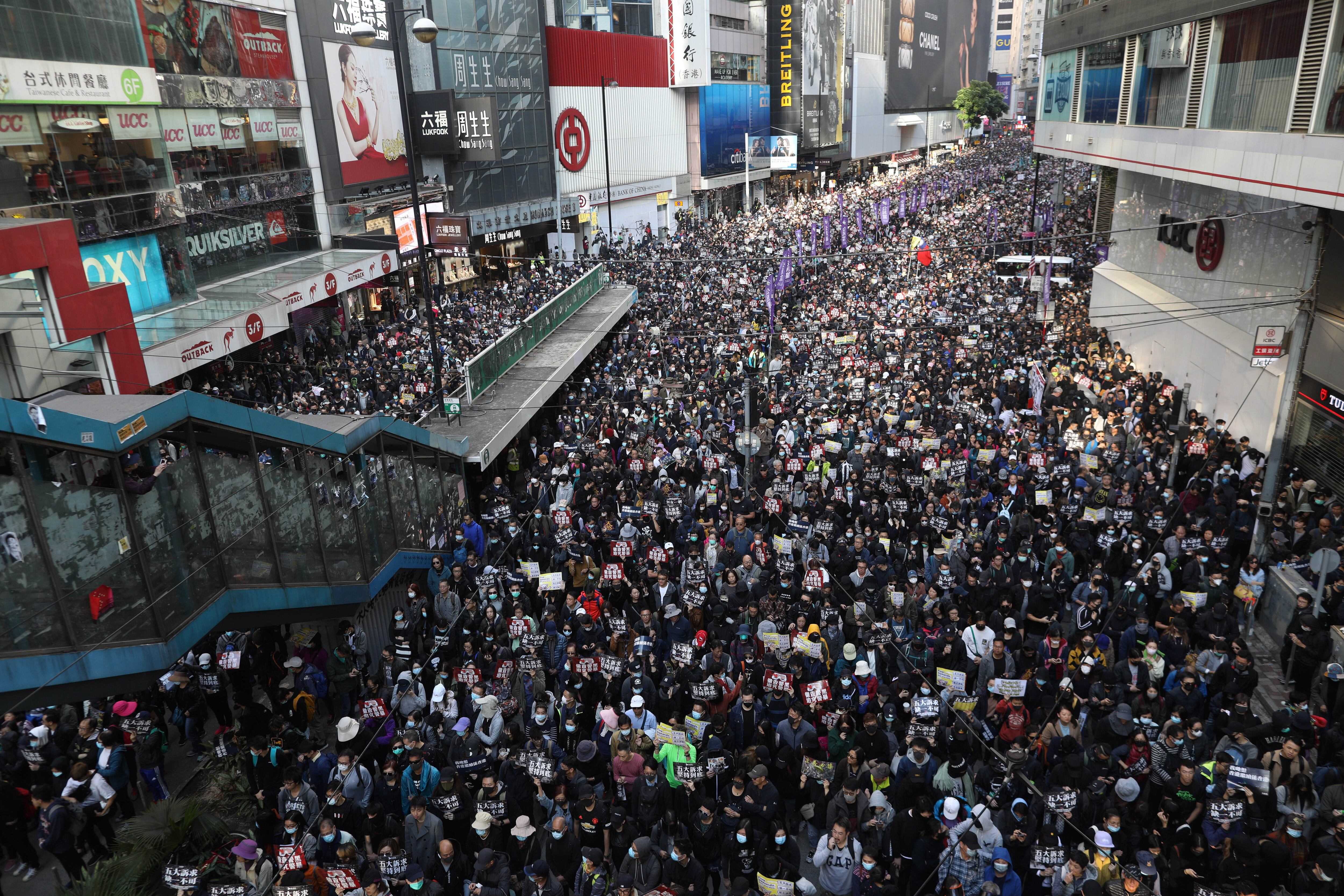 Una inmensa multitud de activistas prodemocracia participó este domingo en Hong Kong en una manifestación por los seis meses del inicio de sus protestas, y en la que se quiso ofrecer a las a