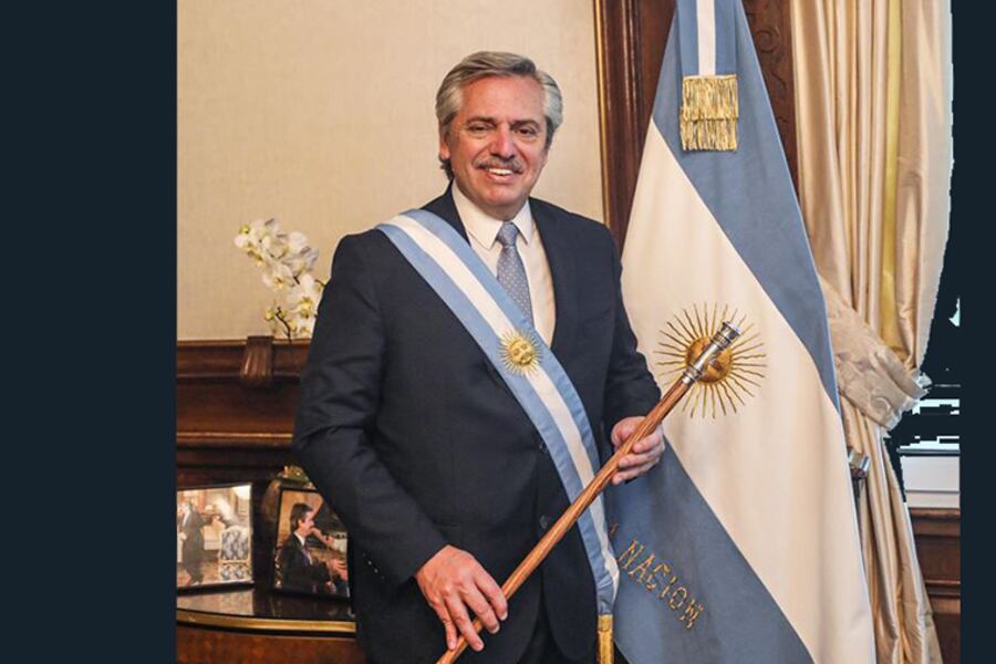 El presidente Alberto Fernández eligió para tener sobre su escritorio de trabajo en su despacho de la Casa Rosada dos fotografías que le recuerdan momentos de su gestión como Jefe de Gabinet