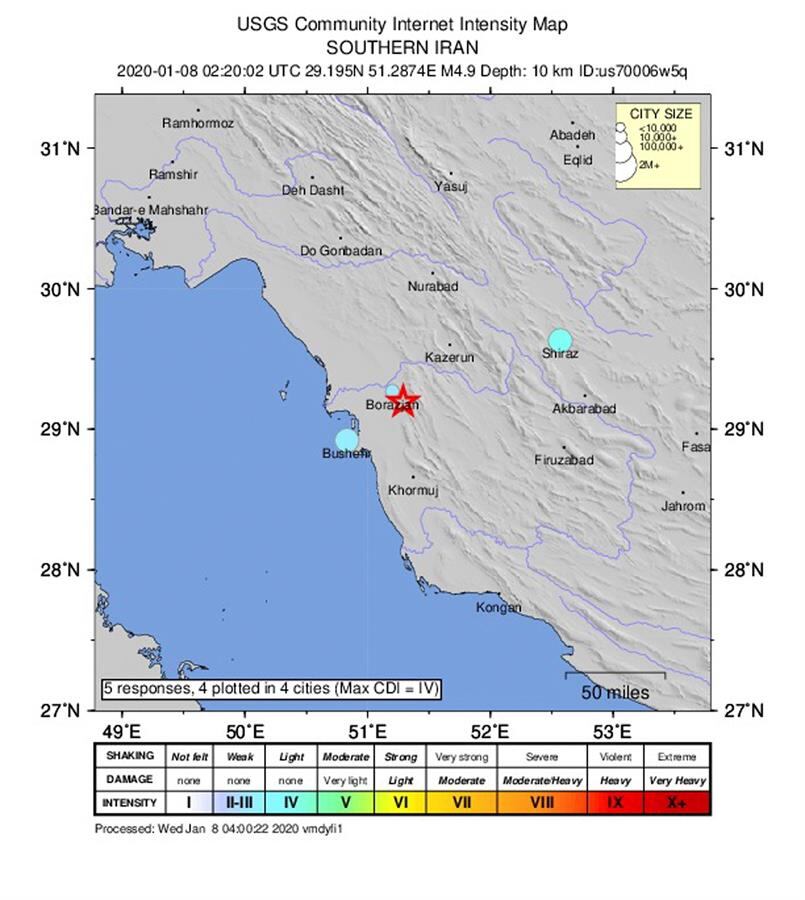 Un sismo de magnitud 4,5 azotó este miércoles una región del suroeste de Irán donde se encuentra la central nuclear de Bushehr, informó el Servicio Geológico de Estados Unidos (USGS por sus