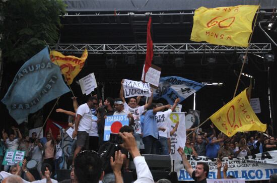 Los dirigentes del Consejo Directivo de la CGT debieron soportar abucheos y el grito de "paro general" de los presentes en la manifestación. Cuando se bajaron del palco tuvieron que refugiarse en la sede del gremio de Empleados de Comercio.
