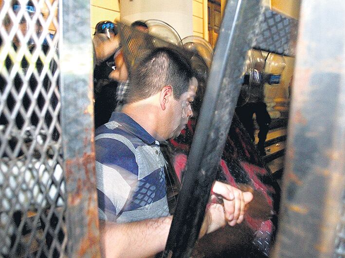 Uno de los policías, detrás del vallado de la Catedral, vestido de civil con remera rayada, fue fotografiado por un reportero gráfico de PáginaI12.