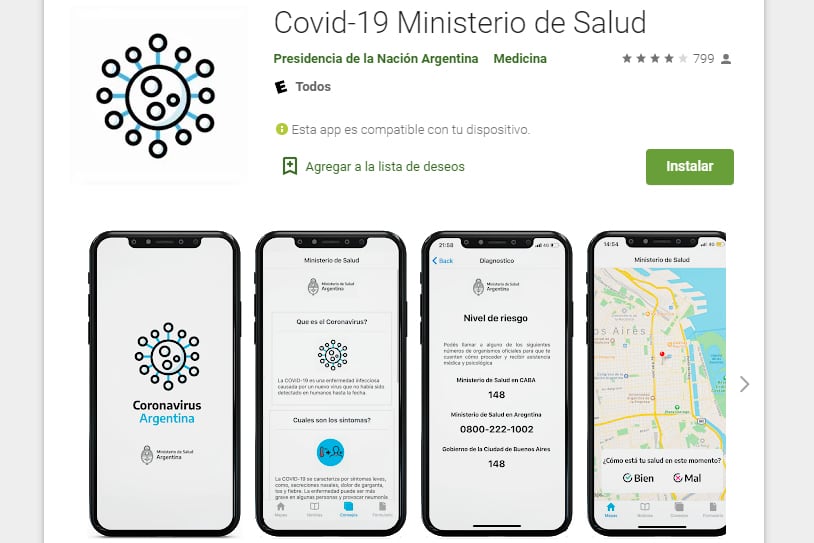 Medio millón personas se realizaron el autoexamen de síntomas con la aplicación "Coronavirus Argentina"