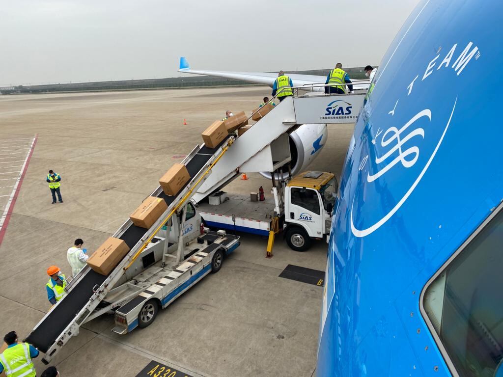 Viaja desde China y transporta 13 toneladas de insumos médicos