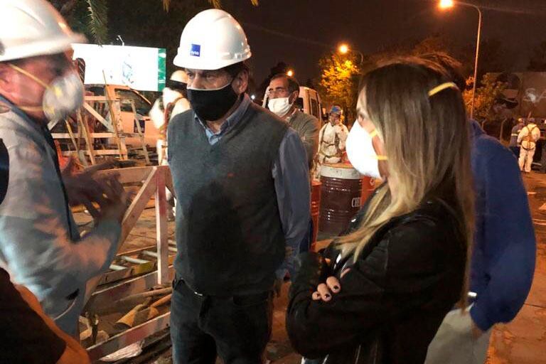 La presidenta de AySA, Malena Galmarini, visitó durante la madrugada la obra que la empresa estatal realiza en Pacheco, Tigre, para solucionar la rotura de un conducto de agua provoca