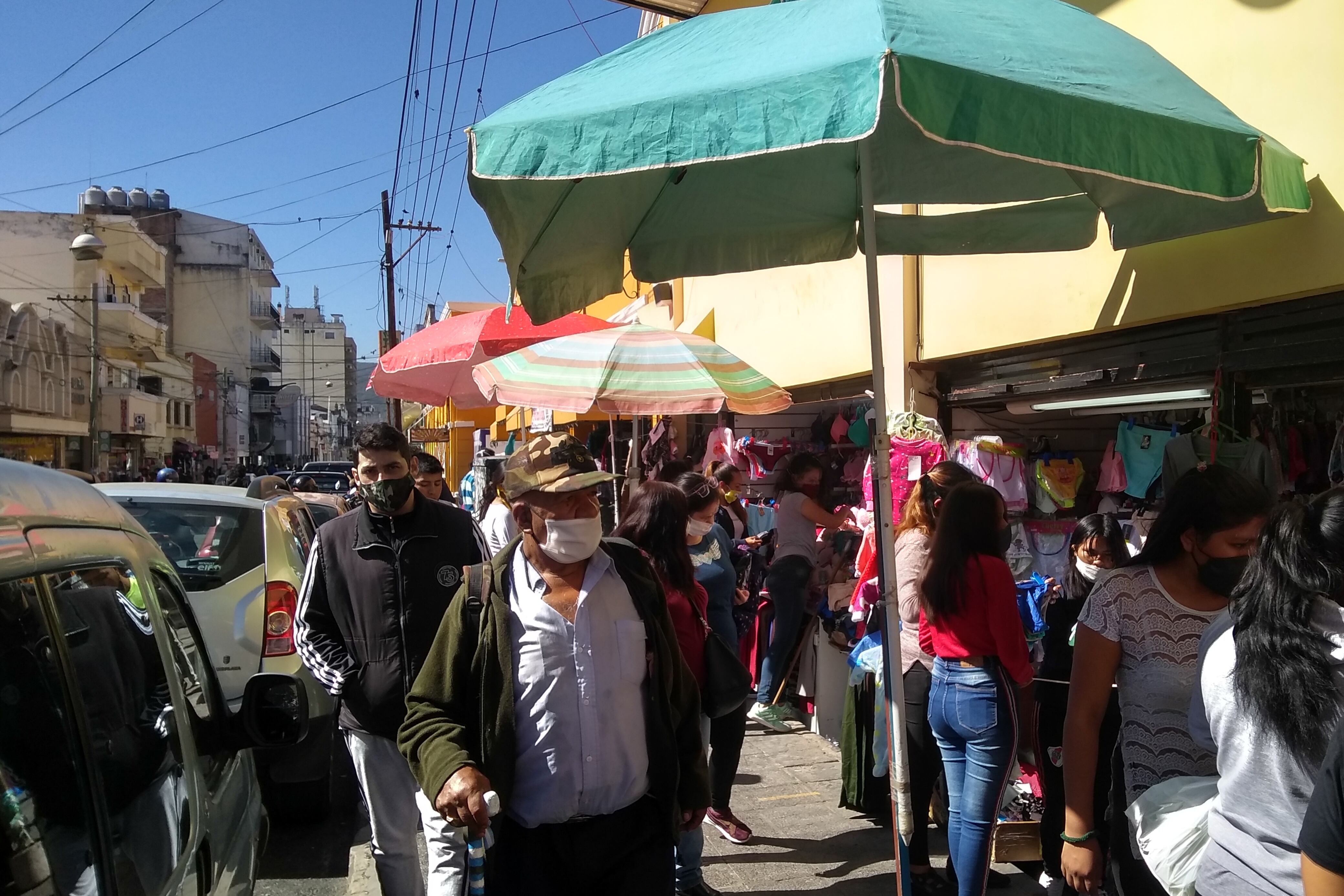 Gente, filas y barbijos en un sábado casi habitual