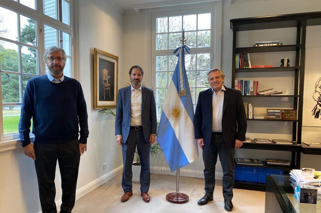 El presidente Alberto Fernández recibió hoy en la residencia de Olivos al gerente general de la compañía farmacéutica Pfizer, Nicolás Vaquer, y al director científico de la Fundación