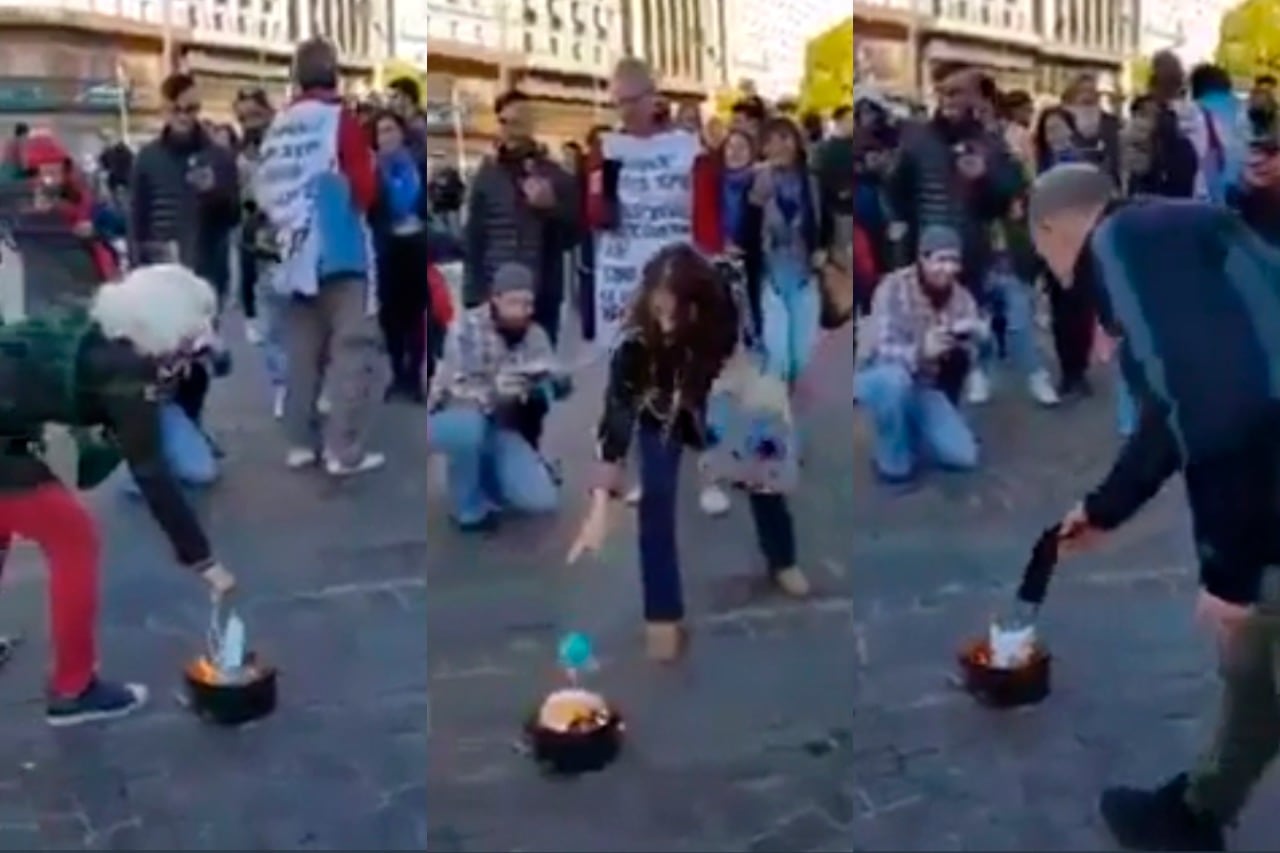 Repudio general contra la "quema de barbijos" en el Obelisco