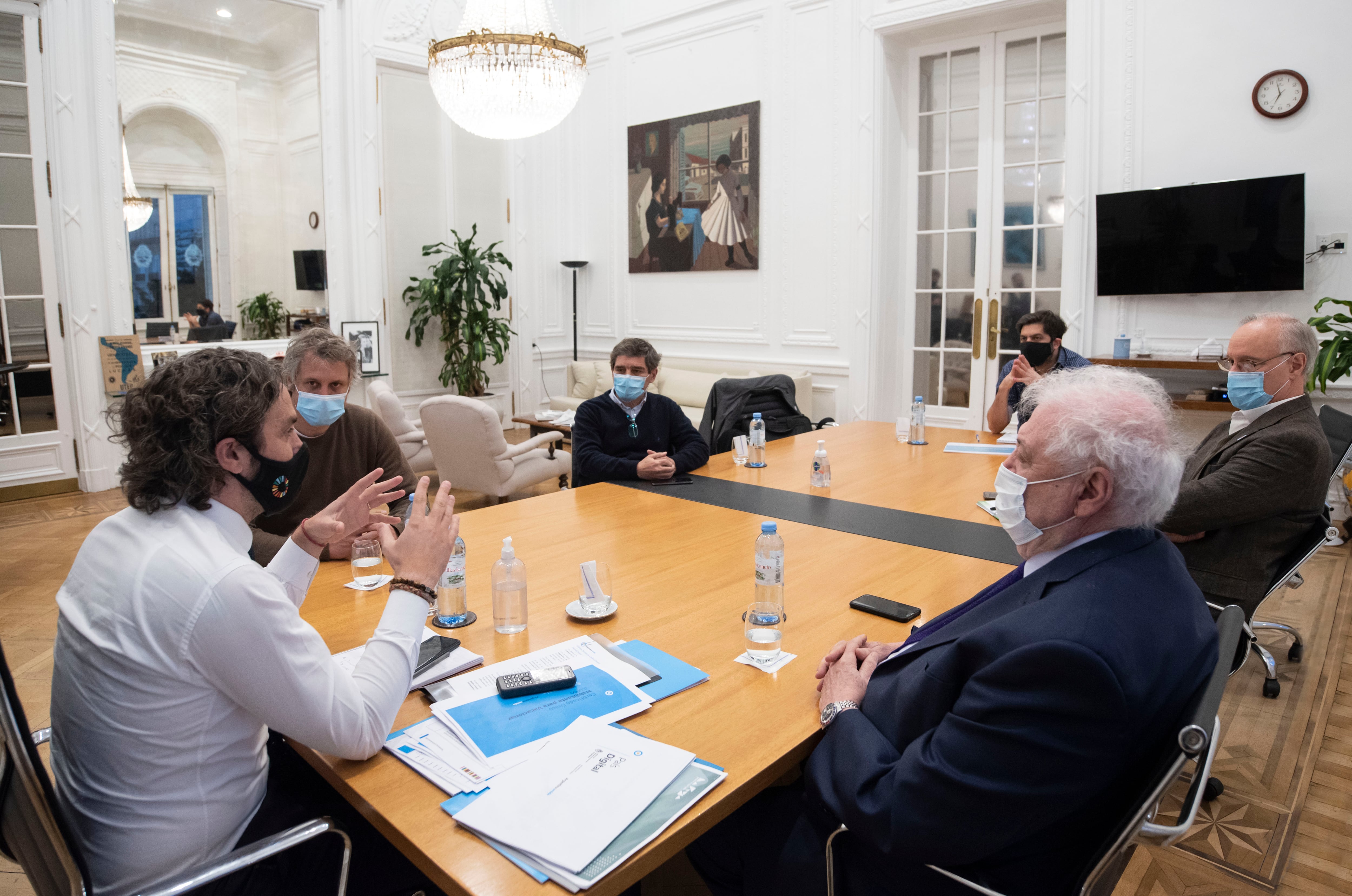 La reunión tuvo lugar en el despacho de Santiago Cafiero en la Casa Rosada. Los gobiernos comienzan a "darse el lujo" de analizar lo que podría venir en una próxima etapa, en caso de mantenerse esta tendencia a la baja.