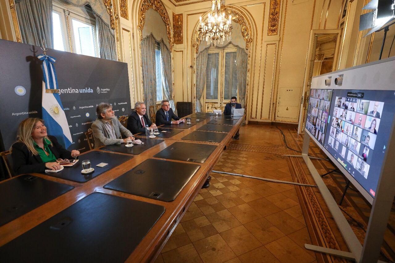 El presidente Alberto Fernández participó ayer de un encuentro remoto con más de cien representantes de la Corriente Nacional de la Militancia de diferentes provincias, para celebrar los 15