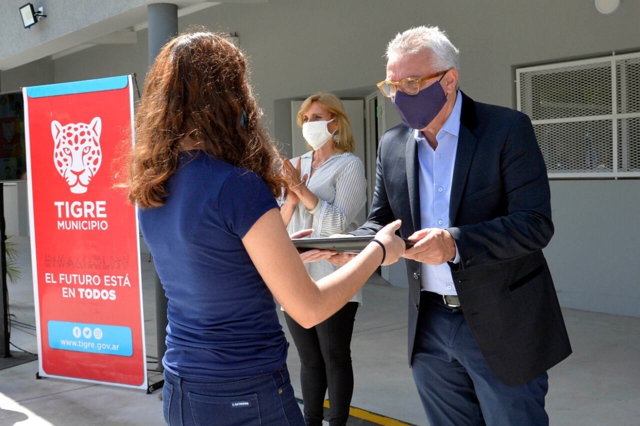 El intendente Julio Zamora y  autoridades educativas regionales participaron de la entrega simbólica en la escuela Nº 36 de Benavídez, en el marco del Programa Nacional “Seguimos Educando