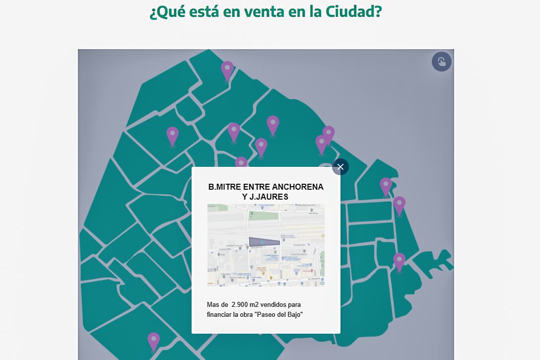 El sitio web se sirve de un mapa interactivo y muestra las "aproximadamente 30 hectáreas que se encuentran en venta en la Ciudad", por iniciativa del Ejecutivo.