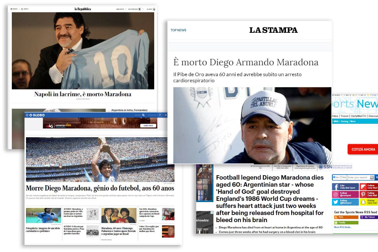 Cómo impactó la muerte de Diego Maradona en los diarios del mundo